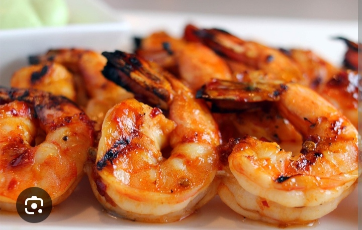 Descripción: Jugosos camarones asados a la perfección bañados en una fina capa de aceite de oliva acompañados de espárragos frescos papas fritas ensalada y salsas